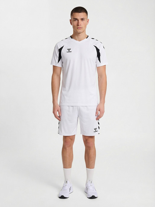 A hmlCORE 2.0 JERSEY S/S egy rövid ujjú sportmez, amely könnyű anyagból készült, kényelmet és mozgásszabadságot biztosít tevékenységek közben. A mez raglan ujjakkal rendelkezik a fokozott mobilitás érdekében, kontrasztos panelekkel a vállakon és az ikonikus Hummel chevronokkal az ujjakon, amelyek kiemelik a sportos csapatmegjelenést. A mellkason található Hummel logó teszi teljessé a dizájnt.