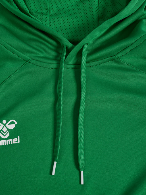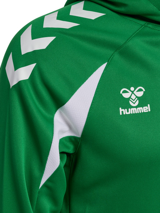 A hmlCORE 2.0 HOODIE KIDS egy könnyű, hosszú raglan ujjú, kapucnival ellátott kapucnis pulóver. A pulóver kontrasztos panelekkel rendelkezik a vállakon, Hummel mintával az ujjakon és Hummel logóval a mellkason.