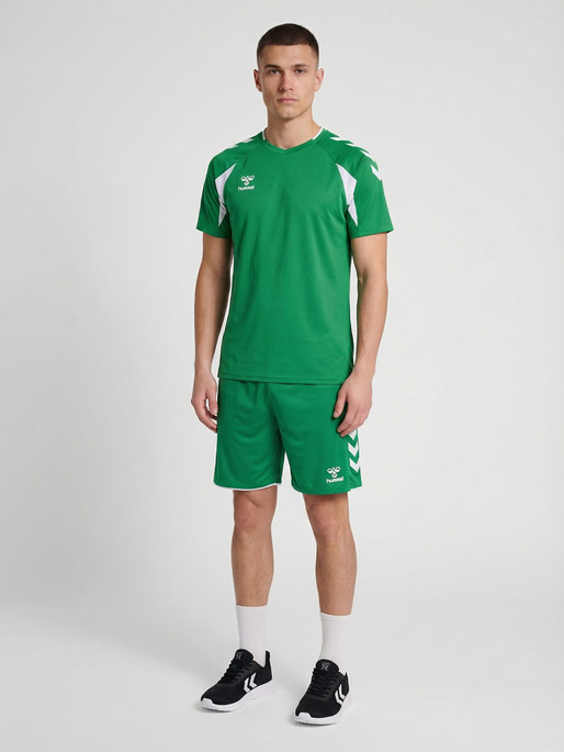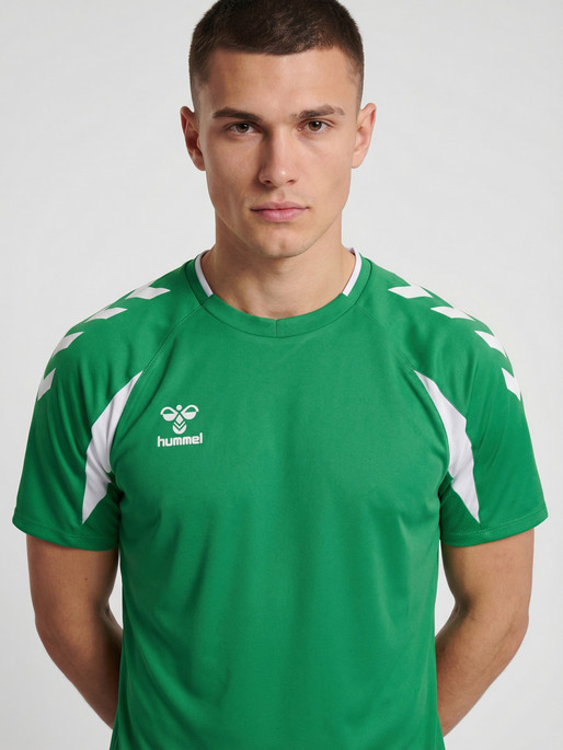 A hmlCORE 2.0 JERSEY S/S egy rövid ujjú sportmez, amely könnyű anyagból készült, kényelmet és mozgásszabadságot biztosít tevékenységek közben. A mez raglan ujjakkal rendelkezik a fokozott mobilitás érdekében, kontrasztos panelekkel a vállakon és az ikonikus Hummel chevronokkal az ujjakon, amelyek kiemelik a sportos csapatmegjelenést. A mellkason található Hummel logó teszi teljessé a dizájnt.