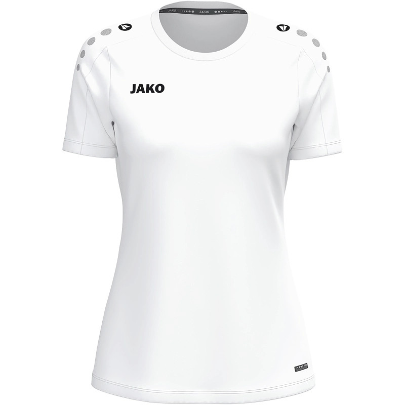 Női póló One - Sportos, funkcionális és fenntartható. A női póló a modern dizájnt ötvözi a kivételes kényelemmel. A vállon található JAKO pöttyök dinamikus, sportos megjelenést kölcsönöznek a pólónak, míg a jobb mellkason található JAKO logó finoman kiemeli a márkát. A Keep Dry technológiának köszönhetően a nedvesség hatékonyan elvezeti a testtől, így kényelmesen szárazon tart még intenzív edzések során is. Újrahasznosított poliészterből készült ez a póló, amely a fenntarthatóságot, a légáteresztő képességet és a tartósságot jelképezi. Letisztult, sokoldalú kialakítása ideálissá teszi a testreszabáshoz, például klublogóval vagy egyedi márkajelzéssel. Akár edzésről, szabadidős tevékenységekről vagy csapattevékenységekről van szó, a női póló One stílusával, funkcionalitásával és fenntartható minőségével lenyűgöző. Fedezd fel most, és szabd személyre a női pólódat.