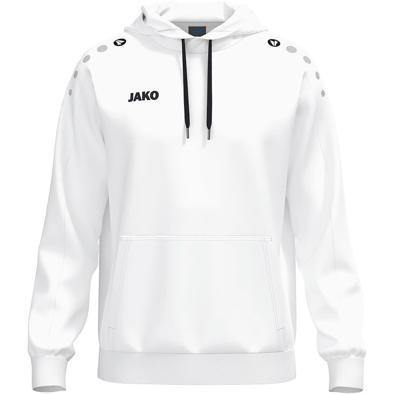 One Cotton kapucnis pulóver - Kényelmes és testreszabható. A One Cotton kapucnis pulóver klasszikus dizájnjával és kivételes kényelmével lenyűgöző. A vállon található JAKO pöttyök és a jobb mellkason található JAKO logó sportos, mégis modern megjelenést kölcsönöznek a pulóvernek. A puha, bolyhozott belső rész különösen kényelmes érzetet biztosít, és megbízható meleget biztosít – ideális szabadidős tevékenységekhez, bemelegítéshez vagy mindennapi viselethez. A foltzseb kényelmes tárolást kínál a kezek vagy az apróságok számára. Egyszerű, mégis kiváló minőségű kialakításának köszönhetően a kapucnis pulóver tökéletes a személyre szabáshoz, például klublogóval, kezdőbetűkkel vagy céges márkajelzéssel. Akár sportoláshoz, szabadidőhöz vagy edzésre menet – a One Cotton kapucnis pulóver tökéletesen ötvözi a kényelmet, a funkcionalitást és a stílust. Fedezd fel most, és szabd személyre a One Cotton kapucnis pulóveredet.