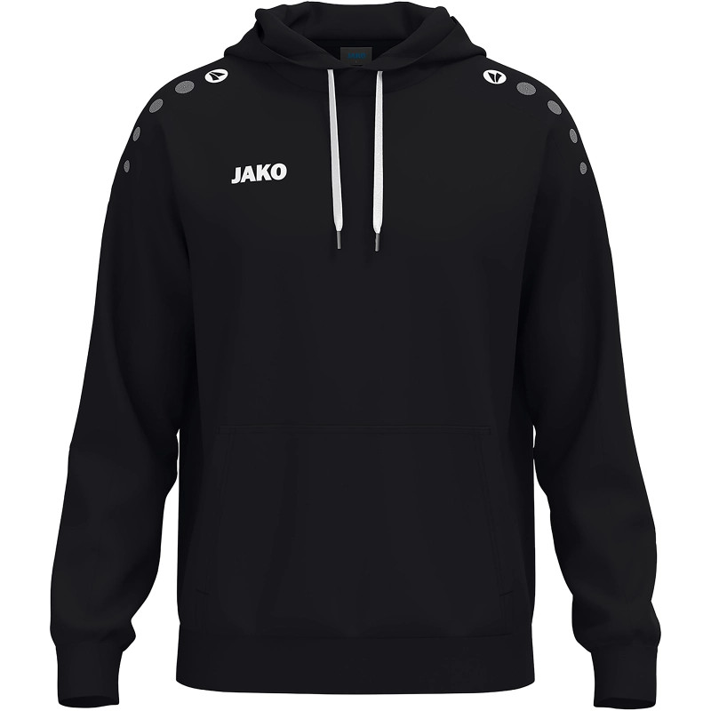 One Cotton kapucnis pulóver - Kényelmes és testreszabható. A One Cotton kapucnis pulóver klasszikus dizájnjával és kivételes kényelmével lenyűgöző. A vállon található JAKO pöttyök és a jobb mellkason található JAKO logó sportos, mégis modern megjelenést kölcsönöznek a pulóvernek. A puha, bolyhozott belső rész különösen kényelmes érzetet biztosít, és megbízható meleget biztosít – ideális szabadidős tevékenységekhez, bemelegítéshez vagy mindennapi viselethez. A foltzseb kényelmes tárolást kínál a kezek vagy az apróságok számára. Egyszerű, mégis kiváló minőségű kialakításának köszönhetően a kapucnis pulóver tökéletes a személyre szabáshoz, például klublogóval, kezdőbetűkkel vagy céges márkajelzéssel. Akár sportoláshoz, szabadidőhöz vagy edzésre menet – a One Cotton kapucnis pulóver tökéletesen ötvözi a kényelmet, a funkcionalitást és a stílust. Fedezd fel most, és szabd személyre a One Cotton kapucnis pulóveredet.