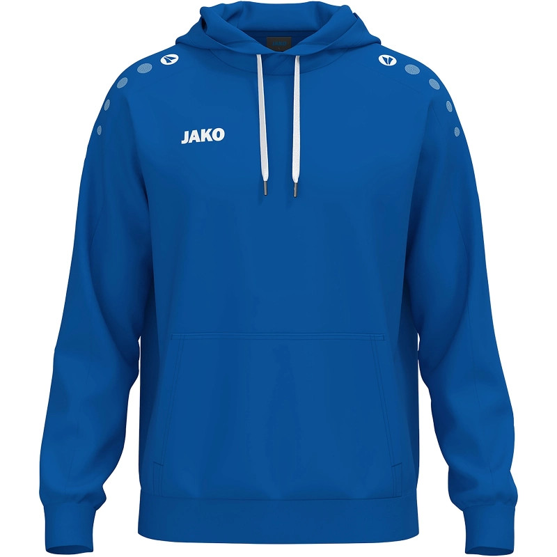 One Cotton kapucnis pulóver - Kényelmes és testreszabható. A One Cotton kapucnis pulóver klasszikus dizájnjával és kivételes kényelmével lenyűgöző. A vállon található JAKO pöttyök és a jobb mellkason található JAKO logó sportos, mégis modern megjelenést kölcsönöznek a pulóvernek. A puha, bolyhozott belső rész különösen kényelmes érzetet biztosít, és megbízható meleget biztosít – ideális szabadidős tevékenységekhez, bemelegítéshez vagy mindennapi viselethez. A foltzseb kényelmes tárolást kínál a kezek vagy az apróságok számára. Egyszerű, mégis kiváló minőségű kialakításának köszönhetően a kapucnis pulóver tökéletes a személyre szabáshoz, például klublogóval, kezdőbetűkkel vagy céges márkajelzéssel. Akár sportoláshoz, szabadidőhöz vagy edzésre menet – a One Cotton kapucnis pulóver tökéletesen ötvözi a kényelmet, a funkcionalitást és a stílust. Fedezd fel most, és szabd személyre a One Cotton kapucnis pulóveredet.