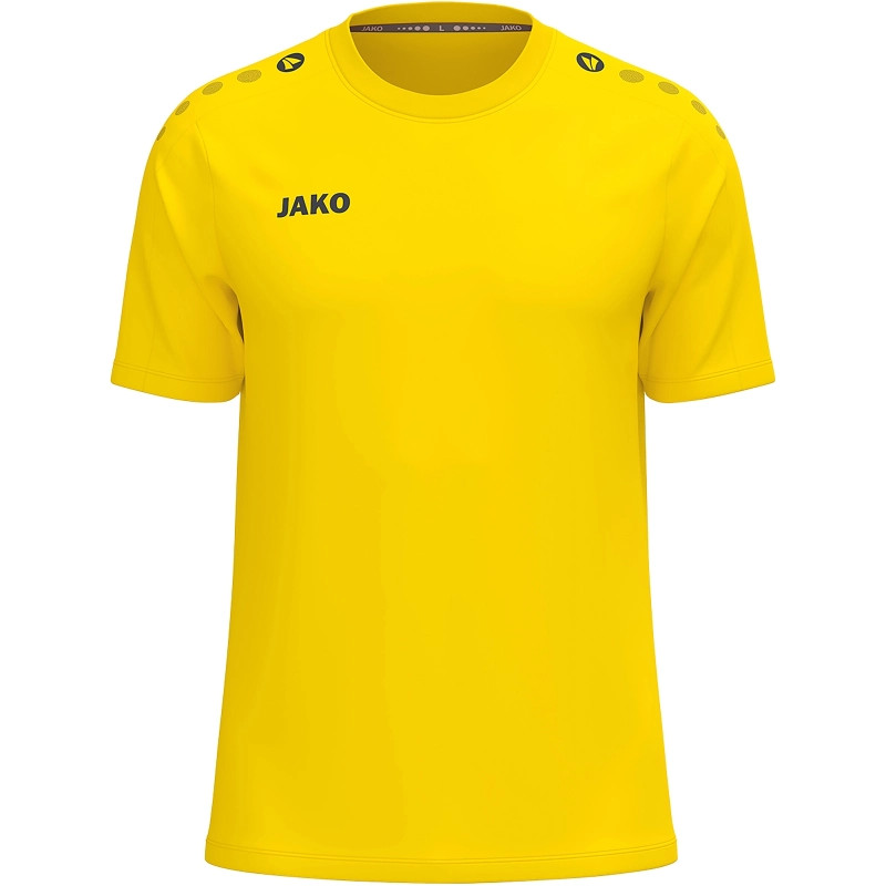 One Cotton póló - Kényelmes és testreszabható. A One Cotton póló időtlen dizájnjával, kivételes kényelmével és sokoldalú felhasználhatóságával nyűgöz le. A vállon található JAKO pöttyök sportos, modern megjelenést kölcsönöznek a pólónak, míg a jobb mellkason található JAKO logó finoman hangsúlyozza a márkát. Egyszerű kialakításának köszönhetően a póló ideális a személyre szabáshoz – tökéletes klubok, csapatok vagy olyan cégek számára, amelyek értékelik az egységes megjelenést. A puha pamut anyag kellemes érzetet, légáteresztő képességet és tartós kényelmet biztosít a mindennapi viselet és a sportolás során. Akár edzésről, szabadidőről, akár csapatfelszerelés részeként viseled, a One Cotton póló ötvözi a minőséget, a stílust és a funkcionalitást. Fedezd fel most, és szabd személyre a One Cotton pólódat.