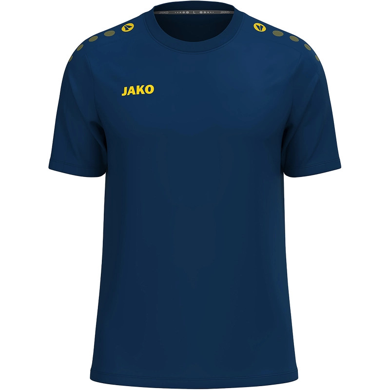 One Cotton póló - Kényelmes és testreszabható. A One Cotton póló időtlen dizájnjával, kivételes kényelmével és sokoldalú felhasználhatóságával nyűgöz le. A vállon található JAKO pöttyök sportos, modern megjelenést kölcsönöznek a pólónak, míg a jobb mellkason található JAKO logó finoman hangsúlyozza a márkát. Egyszerű kialakításának köszönhetően a póló ideális a személyre szabáshoz – tökéletes klubok, csapatok vagy olyan cégek számára, amelyek értékelik az egységes megjelenést. A puha pamut anyag kellemes érzetet, légáteresztő képességet és tartós kényelmet biztosít a mindennapi viselet és a sportolás során. Akár edzésről, szabadidőről, akár csapatfelszerelés részeként viseled, a One Cotton póló ötvözi a minőséget, a stílust és a funkcionalitást. Fedezd fel most, és szabd személyre a One Cotton pólódat.