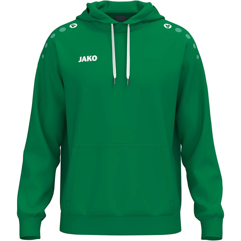 One Cotton kapucnis pulóver - Kényelmes és testreszabható. A One Cotton kapucnis pulóver klasszikus dizájnjával és kivételes kényelmével lenyűgöző. A vállon található JAKO pöttyök és a jobb mellkason található JAKO logó sportos, mégis modern megjelenést kölcsönöznek a pulóvernek. A puha, bolyhozott belső rész különösen kényelmes érzetet biztosít, és megbízható meleget biztosít – ideális szabadidős tevékenységekhez, bemelegítéshez vagy mindennapi viselethez. A foltzseb kényelmes tárolást kínál a kezek vagy az apróságok számára. Egyszerű, mégis kiváló minőségű kialakításának köszönhetően a kapucnis pulóver tökéletes a személyre szabáshoz, például klublogóval, kezdőbetűkkel vagy céges márkajelzéssel. Akár sportoláshoz, szabadidőhöz vagy edzésre menet – a One Cotton kapucnis pulóver tökéletesen ötvözi a kényelmet, a funkcionalitást és a stílust. Fedezd fel most, és szabd személyre a One Cotton kapucnis pulóveredet.