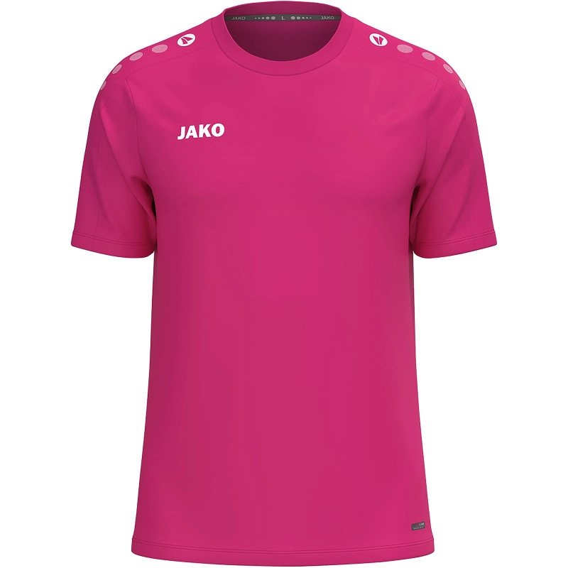 T-Shirt One - Funkcionális, modern és fenntartható. A T-Shirt One sportos dizájnjával és átgondolt funkcionalitásával nyűgöz le. A vállon található JAKO pöttyök dinamikus megjelenést kölcsönöznek a pólónak, míg a jobb mellkason található JAKO logó kiemeli az atlétikus jellegét. A Keep Dry technológiának köszönhetően a tested kényelmesen száraz marad – a nedvesség hatékonyan eltávolodik, még intenzív edzések során is. Az újrahasznosított poliészterből készült póló a fenntarthatóságot, a légáteresztő képességet és a tartósságot jelképezi. Egyszerű dizájnjának köszönhetően a póló ideális testreszabáshoz, például klublogóval, kezdőbetűvel vagy szponzornyomattal. Akár edzésről, akár mindennapi viseletről, akár csapatruházatról van szó – a T-Shirt One tökéletesen ötvözi a kényelmet, a funkcionalitást és a stílust. Fedezd fel most, és szabd személyre a T-Shirt One pólódat.