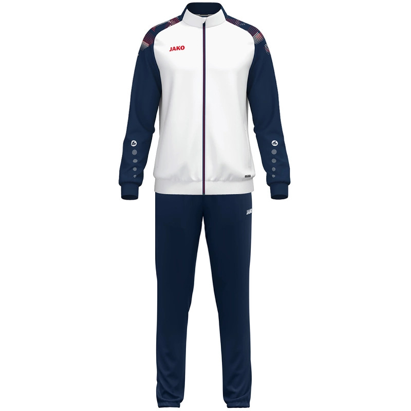 A Sonic poliészter melegítőruha sportos megjelenésével és magas funkcionalitásával lenyűgöző. A feltűnő nyomtatott vállpanel, az ujjon található JAKO pöttyök és a jobb mellkason található JAKO logó modern jelleget kölcsönöz a melegítőruhának. Az újrahasznosított poliészternek és a Global Recycled Standard tanúsítványnak köszönhetően fenntartható módon készül. A praktikus jellemzők, mint a cipzáras oldalsó zsebek, a további nyitott oldalzsebek, a cipzáras lábszárnyílások és a rugalmas lábszár-mandzsetták maximális kényelmet biztosítanak. A Keep Dry technológia biztosítja, hogy kényelmesen száraz maradj még intenzív edzések során is. Ideális csapatmezek és események testreszabásához. Fedezd fel most a Sonic poliészter melegítőruhát, és kezdj el azonnal.