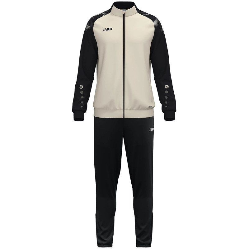 A Sonic poliészter melegítőruha sportos megjelenésével és magas funkcionalitásával lenyűgöző. A feltűnő nyomtatott vállpanel, az ujjon található JAKO pöttyök és a jobb mellkason található JAKO logó modern jelleget kölcsönöz a melegítőruhának. Az újrahasznosított poliészternek és a Global Recycled Standard tanúsítványnak köszönhetően fenntartható módon készül. A praktikus jellemzők, mint a cipzáras oldalsó zsebek, a további nyitott oldalzsebek, a cipzáras lábszárnyílások és a rugalmas lábszár-mandzsetták maximális kényelmet biztosítanak. A Keep Dry technológia biztosítja, hogy kényelmesen száraz maradj még intenzív edzések során is. Ideális csapatmezek és események testreszabásához. Fedezd fel most a Sonic poliészter melegítőruhát, és kezdj el azonnal.
