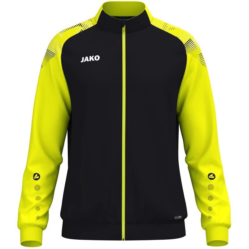 Sonic poliészter dzseki - Dinamikus, modern és fenntartható. A Sonic poliészter dzseki a sportos dizájnt ötvözi a funkcionális jellemzőkkel. A nyomtatott vállpanel feltűnő, modern megjelenést kölcsönöz a dzsekinek, míg az ujjon található JAKO pöttyök tökéletesen kiegészítik a sportos dizájnt. A praktikus cipzáras oldalzsebek biztonságos tárolást biztosítanak a telefon, a kulcsok vagy egyéb apróságok számára. Újrahasznosított poliészterből készült dzseki tartósságával, könnyű kezelhetőségével és fenntarthatóságával lenyűgöző. Akár edzésen, akár az edzőterembe tartasz, akár a szabadidődet élvezed, a Sonic poliészter dzseki minden helyzetben kényelmet és stílust biztosít. Fedezd fel most, és szerezd be ezt a sportos-modern megjelenést a fenntarthatóság iránti elkötelezettséggel.