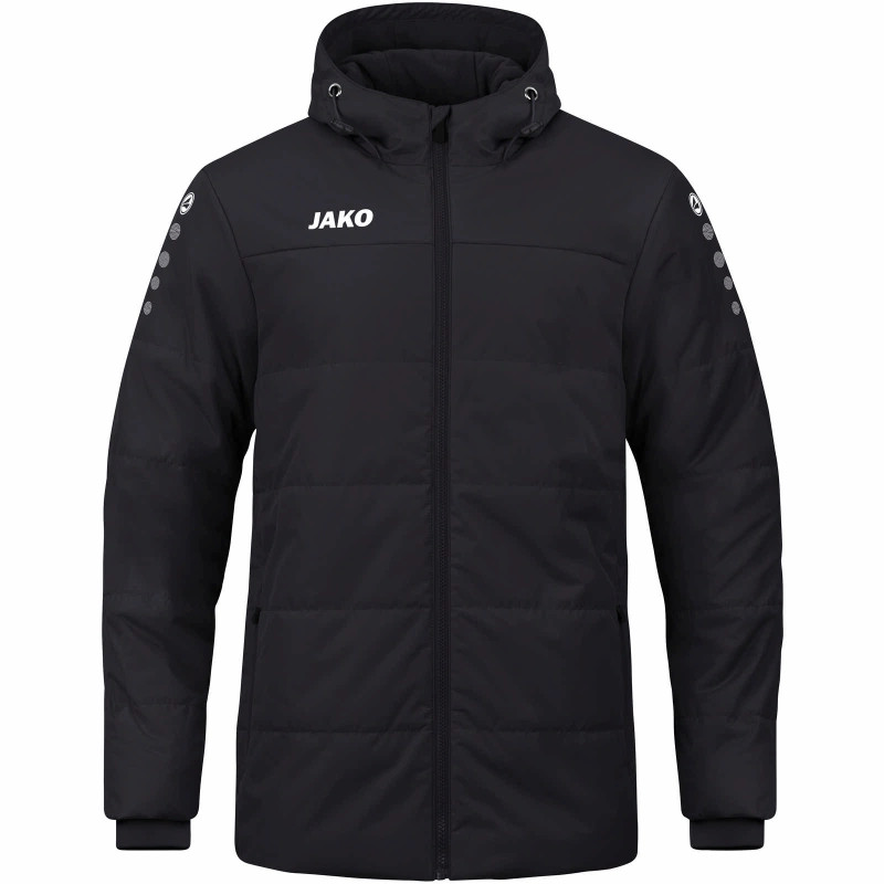 A vízlepergető külső anyag, a hőszigetelő párnázás és a belső puha gyapjú a JAKO edződzseki Team ideális felszerelésévé teszi a hidegebb hőmérsékletekhez. Rossz időben viselheti a gallérba integrált kapucnit. Ezenkívül az ujjakban, a húzózsinórban és a dugókban, valamint a kapucniban integrált bordás mandzsetta véd a szél és az eső behatolása ellen. A kabát így garantálja az optimális viselési kényelmet.