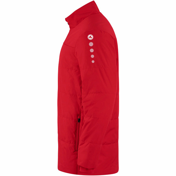 A vízlepergető felső anyag (100% poliészter) és a hőszigetelő párnázás ideális felszereléssé teszi a JAKO csapat edzőkabátját hűvös időben, amikor a pálya mellett állsz. Az ujjakban beépített bordás mandzsetta, belül pedig puha polár gondoskodik a kényelmes viseletről.