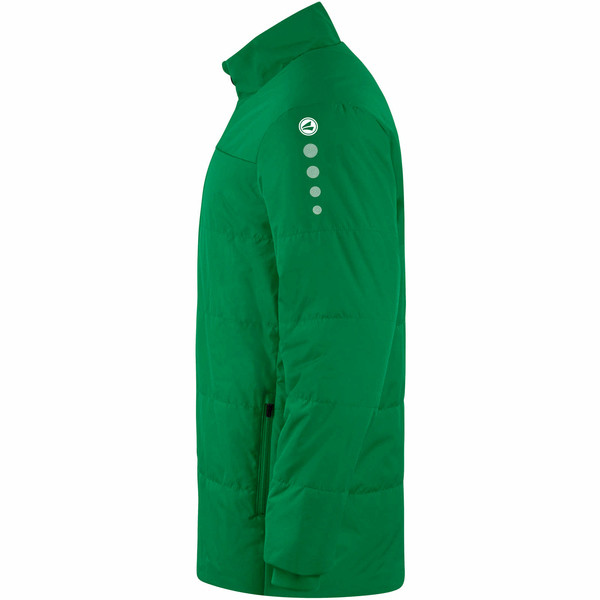 A vízlepergető felső anyag (100% poliészter) és a hőszigetelő párnázás ideális felszereléssé teszi a JAKO csapat edzőkabátját hűvös időben, amikor a pálya mellett állsz. Az ujjakban beépített bordás mandzsetta, belül pedig puha polár gondoskodik a kényelmes viseletről.