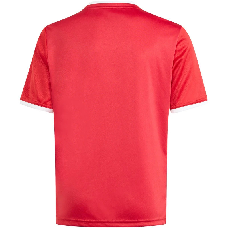 Bemutatkozik az Entrada26 grafikus mez. Fiatal futballrajongók számára tervezve, akik a stílust a funkcionalitással szeretnék ötvözni. Ez a mez hűvösen, szárazon tart, és a teljesítményre összpontosít. A CLIMACOOL technológia elvezeti a nedvességet a bőrödről, így hűvös és száraz érzetet biztosít – semmi zavaró tényező, csak teljesítmény. A kötött anyag lélegző, míg a kerek nyak egy csipetnyi stílust kölcsönöz. A normál szabás kényelmet és mozgásszabadságot garantál. A hímzett Sport jelvény az adidas jellegzetes stílusát adja neki. Ez a grafikus mez igazi futballalapdarab, sokoldalú választás iskolai sportokhoz és hétvégi mérkőzésekhez.