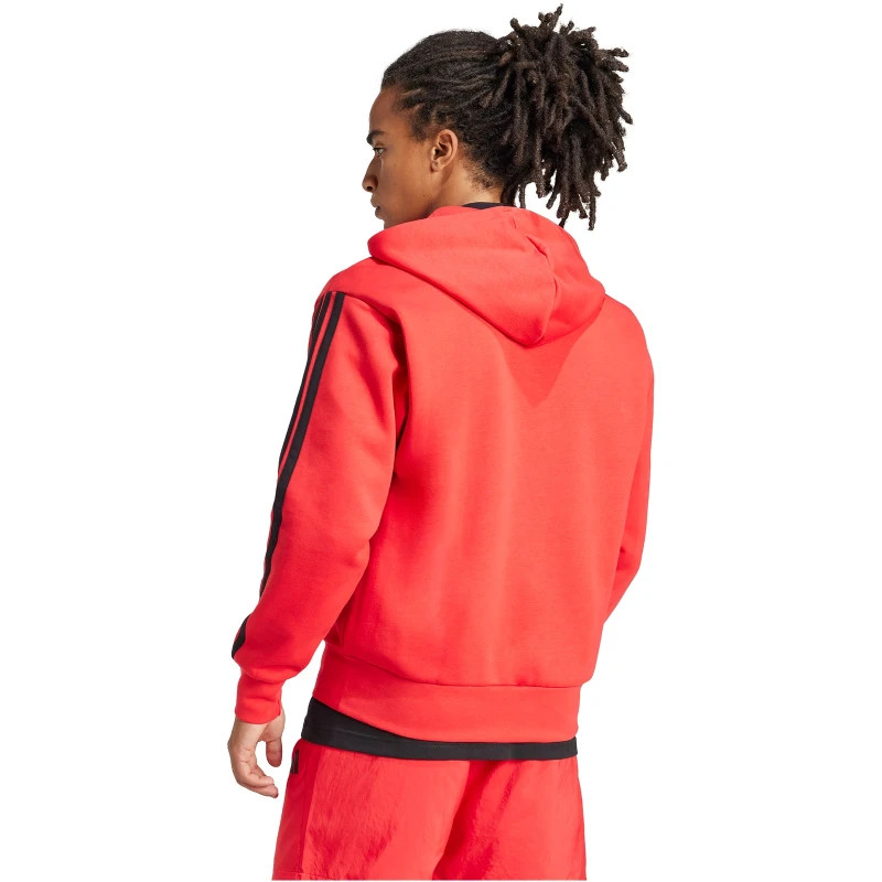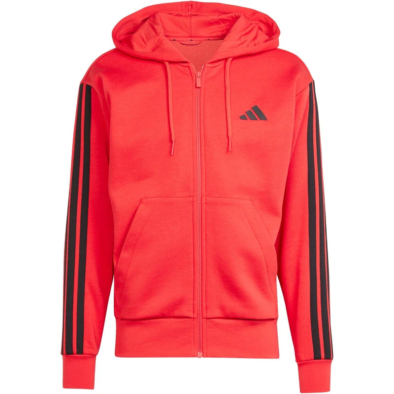 adidas Essentials 3 csíkos kapucnis piros férfi cipzáros felső