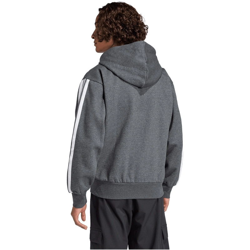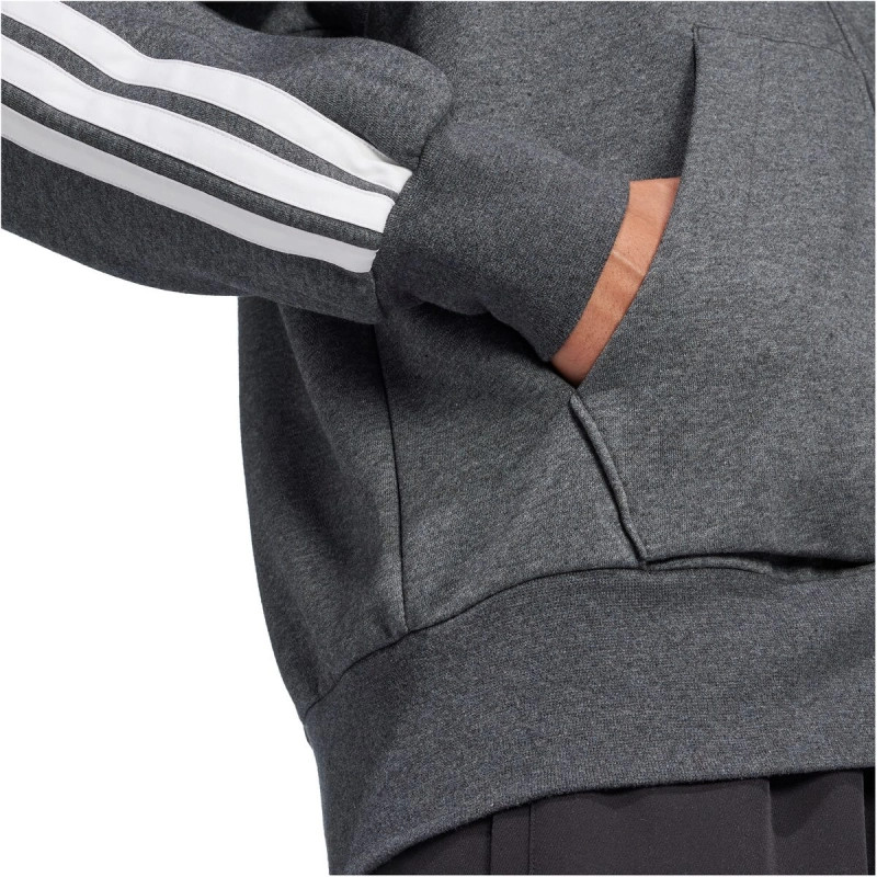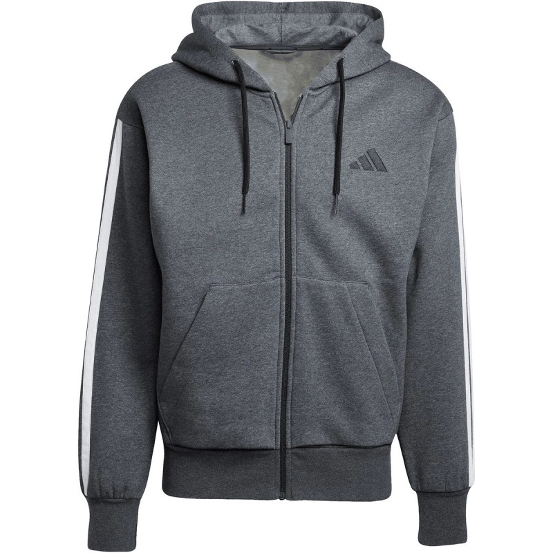 adidas Essentials 3 csíkos kapucnis sötétszürke férfi cipzáros felső