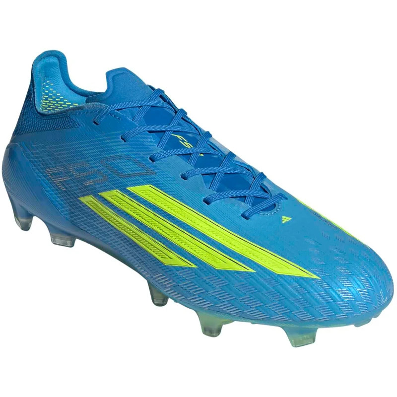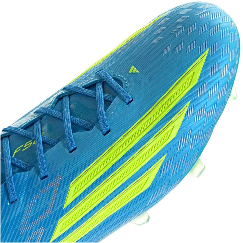 Az F50 Elite Firm Ground /természetes füvespálya/ focicipő azoknak készült, akik a pályán a sebességért rajonganak. Új felsőrész-kialakításával és precíz konstrukciójával ez a cipő a feltűnő stílust a csúcskategóriás teljesítménnyel ötvözi. A Fibertouch felsőrész célzott tartást és puha érzetet biztosít, míg a stratégiailag elhelyezett 3D vonalak fokozott labdaérintést biztosítanak. A Sprintweb szerkezet nagy felbontású 3D textúrájával optimalizálja a labdaérintést a gyors cselezések során. Az alagút alakú nyelv kompressziós illeszkedéssel rugalmasan alkalmazkodik a lábhoz, míg a kulcsfontosságú területeken található TPU megerősítések stabil tartást és biztonságos érzetet biztosítanak. A Sprintframe 360 külső talp anatómiailag kialakított középtalp-szerkezetével és a hosszúkás és félig kúpos stoplik keverékével minden irányban lehetővé teszi a gyorsulást és az agilitást. A nyomtatott adidas 3-Stripes és az F50 logó teszi teljessé a megjelenést. Ez a focicipő ötvözi a funkcionalitást és a stílust, és okos kiegészítője a felszerelésednek.