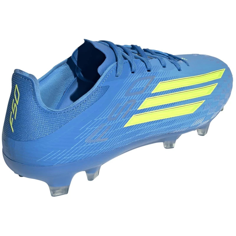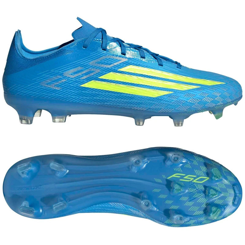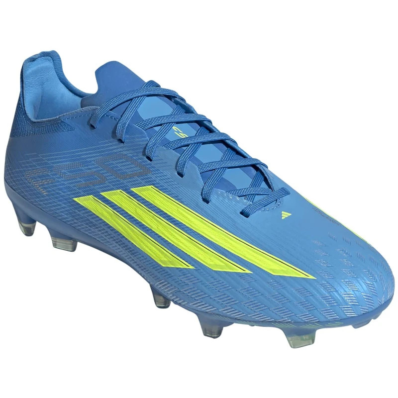 Az F50 Pro Firm Ground stoplicipőt a természetes gyepen való sebességre és irányíthatóságra tervezték. A normál szabás és a fűzők biztonságos illeszkedést biztosítanak, míg a Fibertouch felsőrész kényelmes érzetet nyújt. A Sprintweb textúra és a Sprintshell 360 talp minden irányban fokozza a labdaérintést, a sebességet és a gyorsulást. Belül a kompressziós szabás biztos fogást biztosít. A középtalp mindkét oldalán nyomtatott 3 csíkos márkajelzéssel és a sarokrészen található F50 logóval ez a stoplicipő letisztult dizájnt és technikai precizitást visz a kemény talajra.
