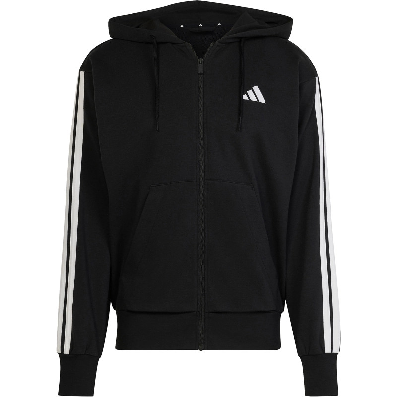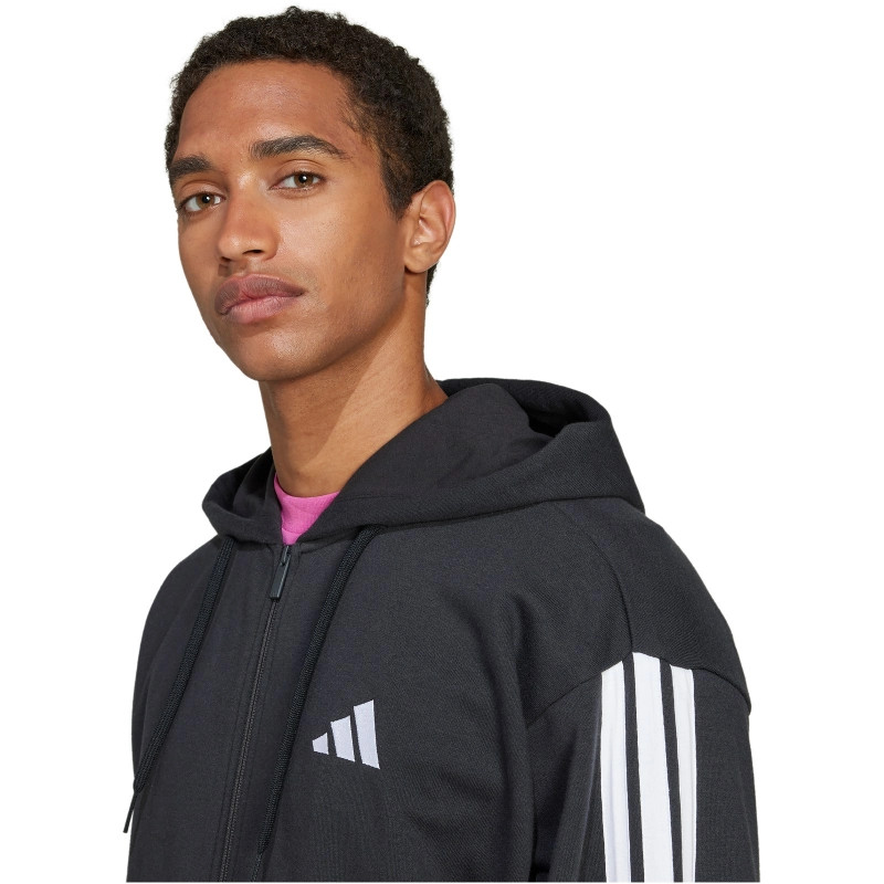 adidas Essentials 3 csíkos francia frottír kapucnis fekete férfi cipzáros felső