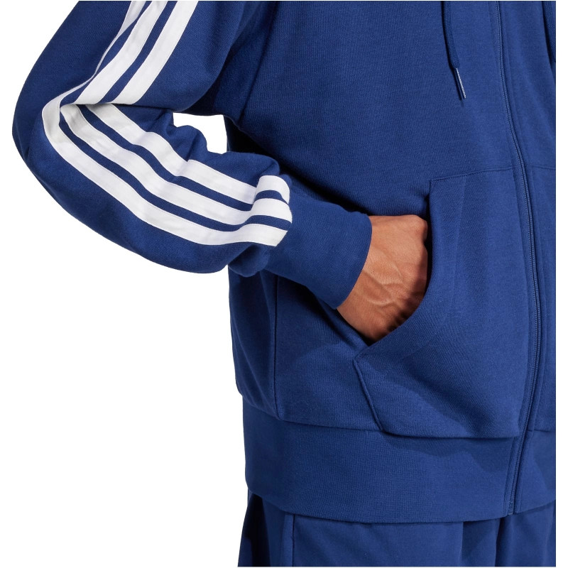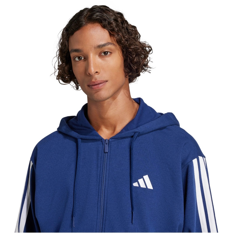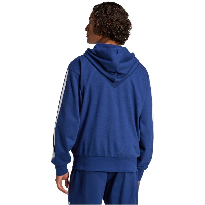 adidas Essentials 3 csíkos francia frottír kapucnis sötétkék férfi cipzáros felső